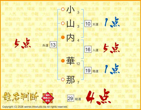 小山内華那さんの総運は29画の4点!