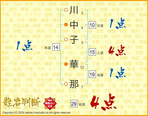 川(3画)中(4画)子(3画) 華(12画)那(7画)