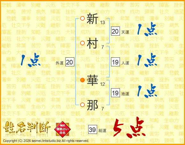 新村華那さんの総運は39画の5点!