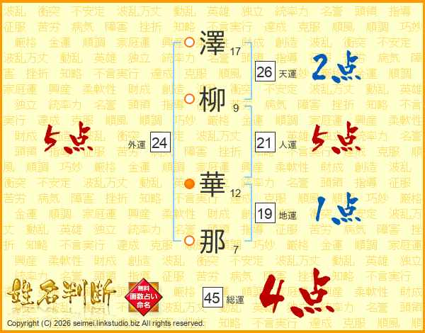 澤柳華那さんの総運は45画の4点!