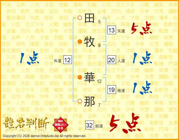 田牧華那さんの総運は32画の5点!