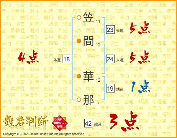笠間華那さんの外運は18画の4点!