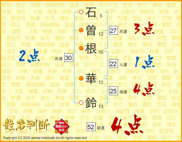 石曽根華鈴さんの総運は52画の4点!