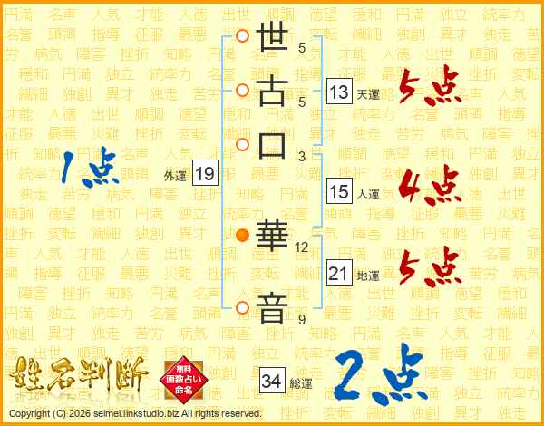 世古口華音さんの地運は21画の5点!