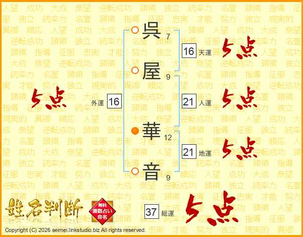 呉屋華音さんの外運は16画の5点!