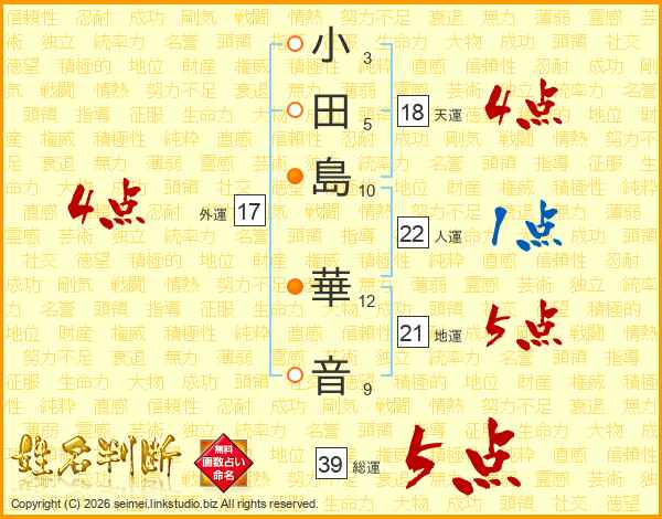 小(3画)田(5画)島(10画) 華(12画)音(9画)