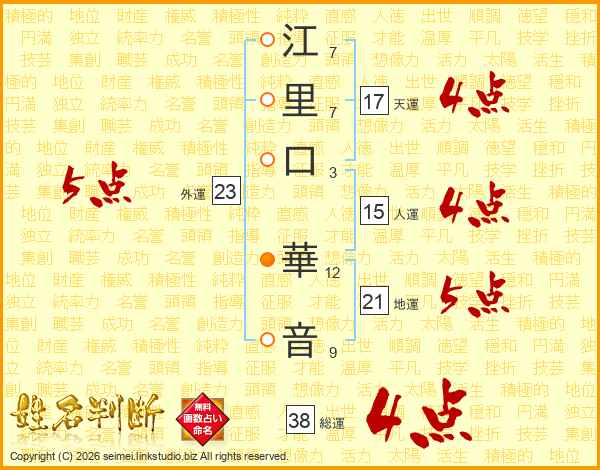 江(7画)里(7画)口(3画) 華(12画)音(9画)