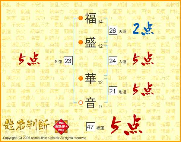 福盛華音さんの総運は47画の5点!