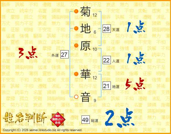 菊地原華音さんの総運は49画の2点!