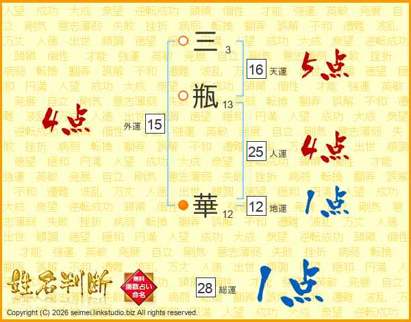 三瓶華さんの人運は25画の4点!