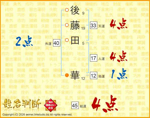 後(9画)藤(19画)田(5画) 華(12画)