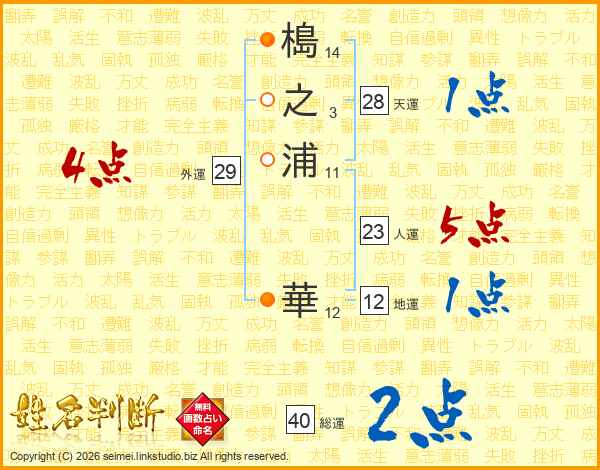 槝之浦華さんの人運は23画の5点!
