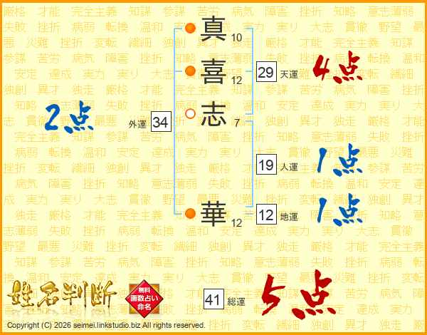 真喜志華さんの総運は41画の5点!