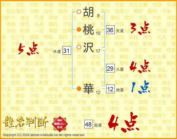 胡桃沢華さんの総運は48画の4点!