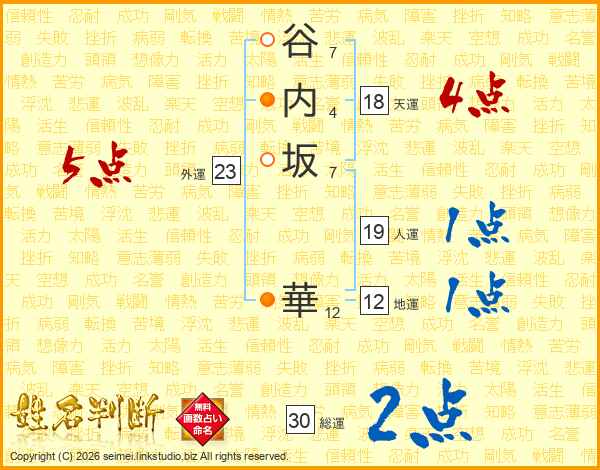 谷内坂華さんの天運は18画の4点!