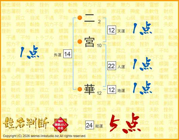 二宮華さんの外運は14画の1点!