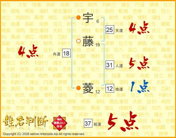 宇藤菱さんの総運は37画の5点!
