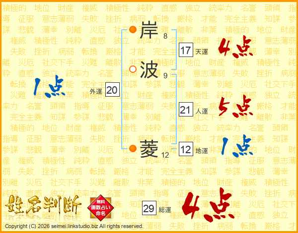 岸波菱さんの総運は29画の4点!