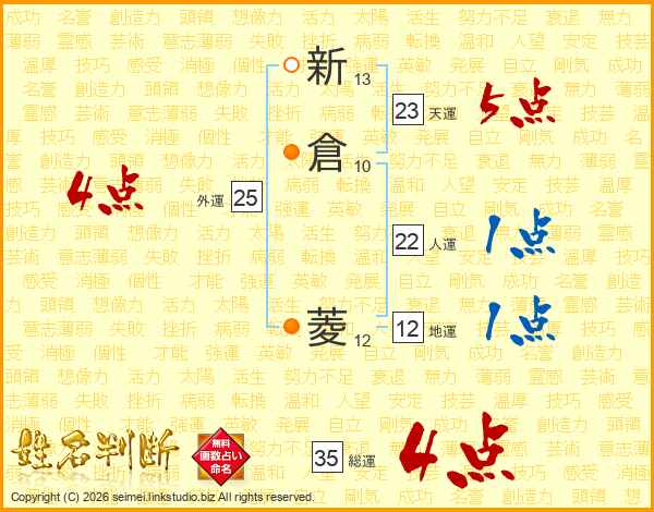 新倉菱さんの総運は35画の4点!