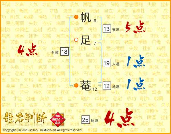 帆足菴さんの総運は25画の4点!
