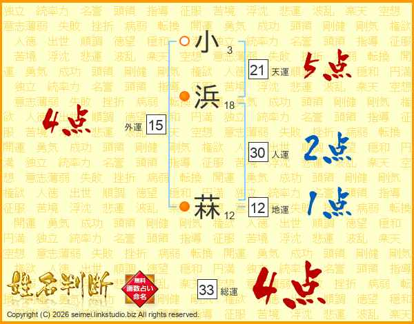 小浜菻さんの総運は33画の4点!