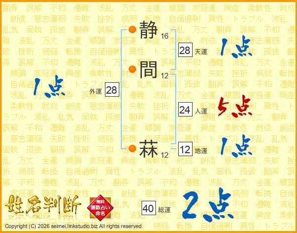 静間菻さんの人運は24画の5点!