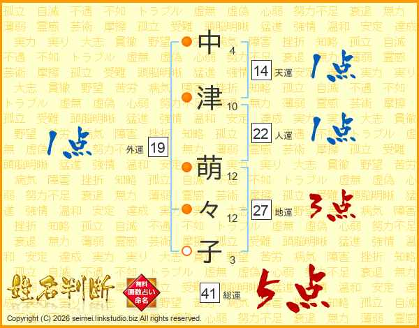 中津萌々子さんの総運は41画の5点!