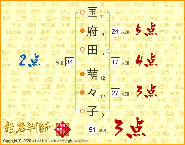 国府田萌々子さんの天運は24画の5点!