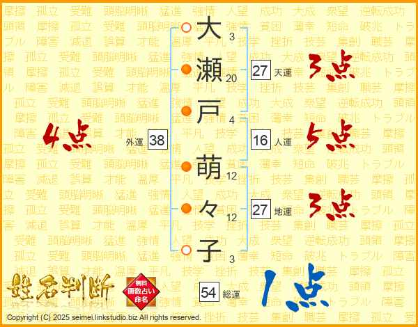 大瀬戸萌々子さんの総運は54画の1点!