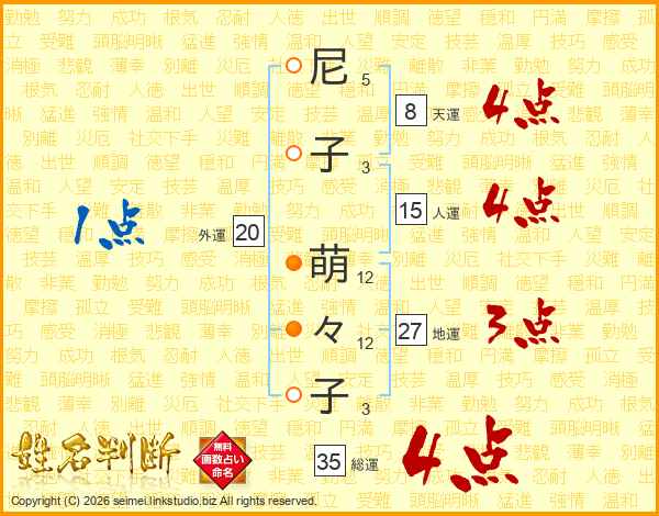 尼(5画)子(3画) 萌(12画)々(12画)子(3画)