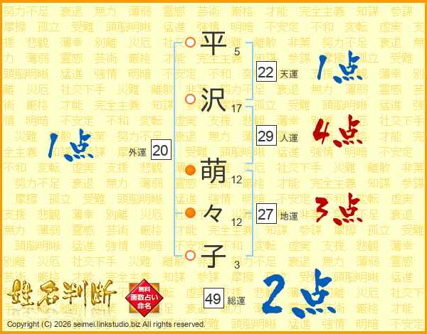 平沢萌々子さんの総運は49画の2点!