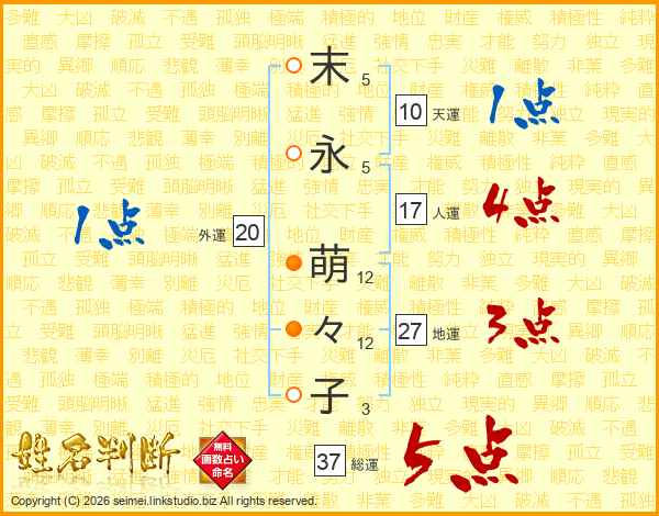 末(5画)永(5画) 萌(12画)々(12画)子(3画)
