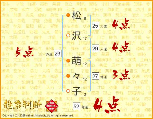 松沢萌々子さんの総運は52画の4点!