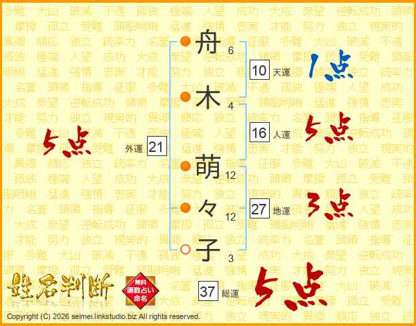 舟(6画)木(4画) 萌(12画)々(12画)子(3画)