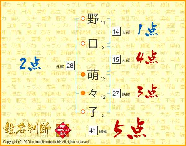 野口萌々子さんの総運は41画の5点!