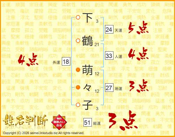 下鶴萌々子さんの外運は18画の4点!