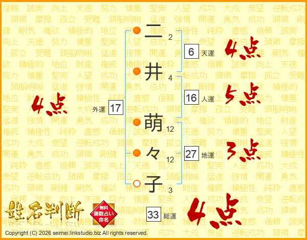 二(2画)井(4画) 萌(12画)々(12画)子(3画)