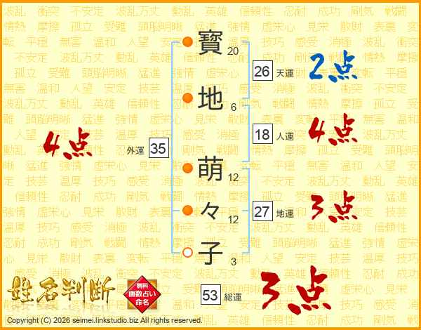 寳地萌々子さんの天運は26画の2点!