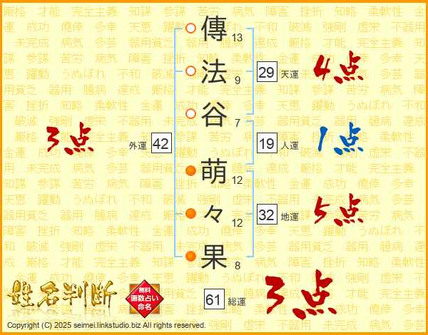 傳法谷萌々果さんの天運は29画の4点!