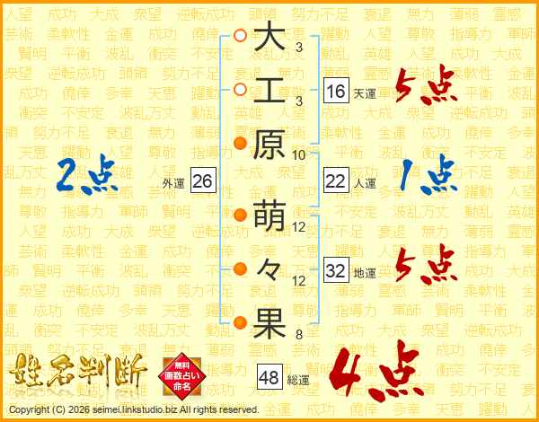 大工原萌々果さんの総運は48画の4点!