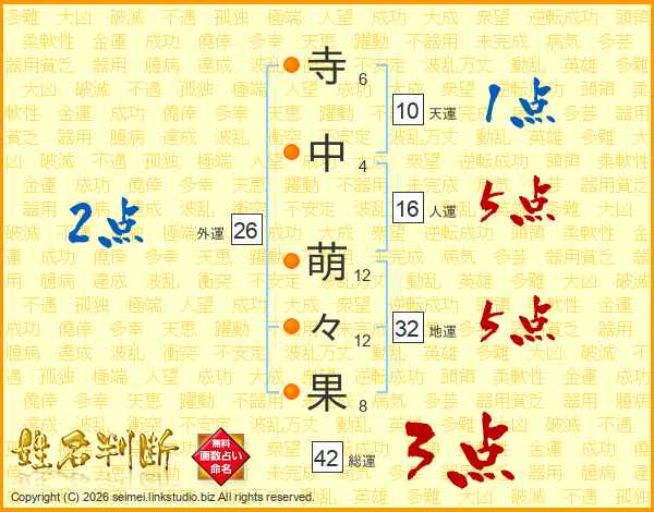寺中萌々果さんの総運は42画の3点!