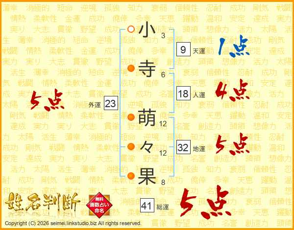 小寺萌々果さんの総運は41画の5点!