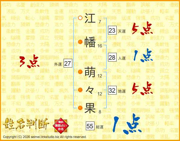 江幡萌々果さんの総運は55画の1点!