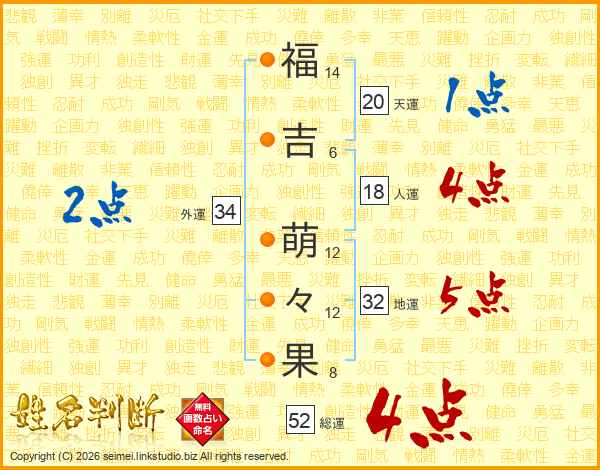 福吉萌々果さんの総運は52画の4点!
