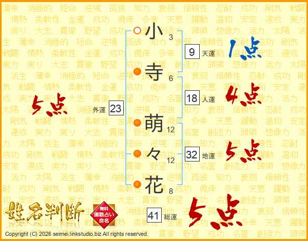 小寺萌々花さんの総運は41画の5点!