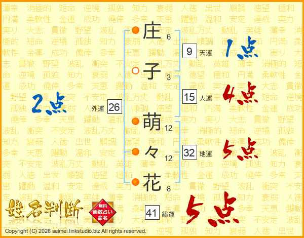 庄子萌々花さんの総運は41画の5点!