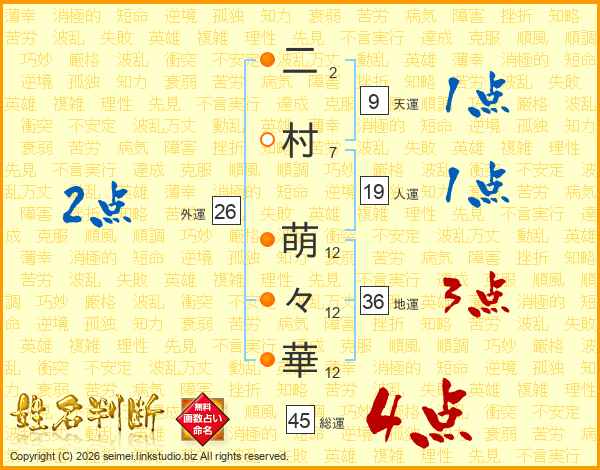 二村萌々華さんの総運は45画の4点!