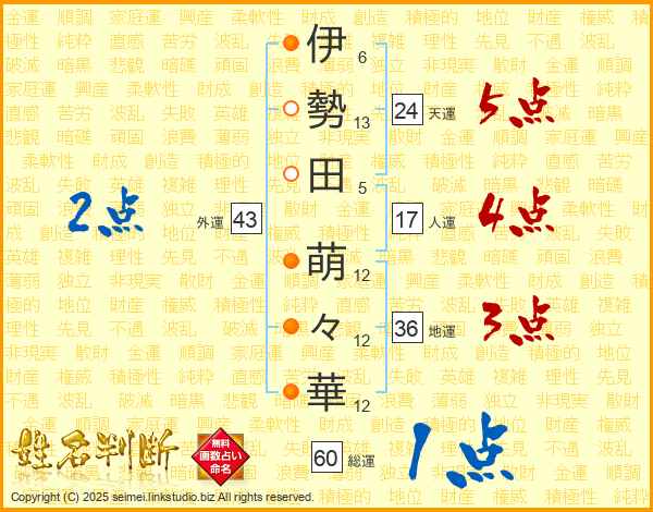 伊勢田萌々華さんの天運は24画の5点!