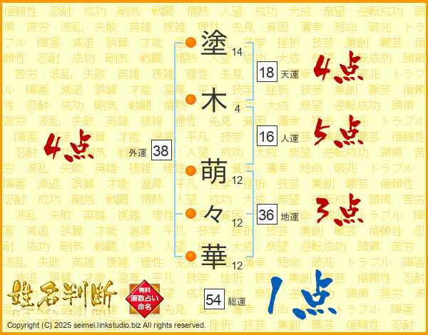 塗木萌々華さんの天運は18画の4点!