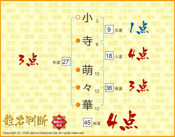 小寺萌々華さんの総運は45画の4点!